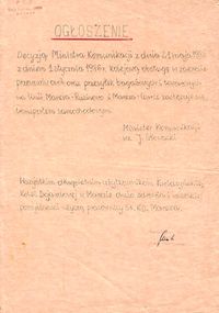 Ogłoszenie o zawieszeniu ruchu pociągów i zastąpieniu ich komunikacją samochodową[edytuj]