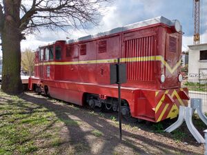 Pomnik Lxd2-466 na stacji Piaseczno Miasto wąskotorowe. 24.04.2021 Fot. Mikołaj Łuszczyński