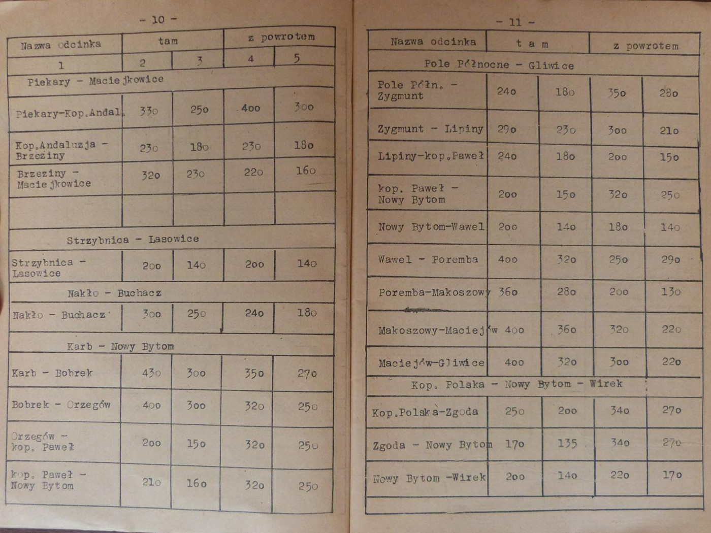 Służbowy rozkład jazdy Górnośląskich Kolei Wąskotorowych ważny od 14 maja 1950 roku
