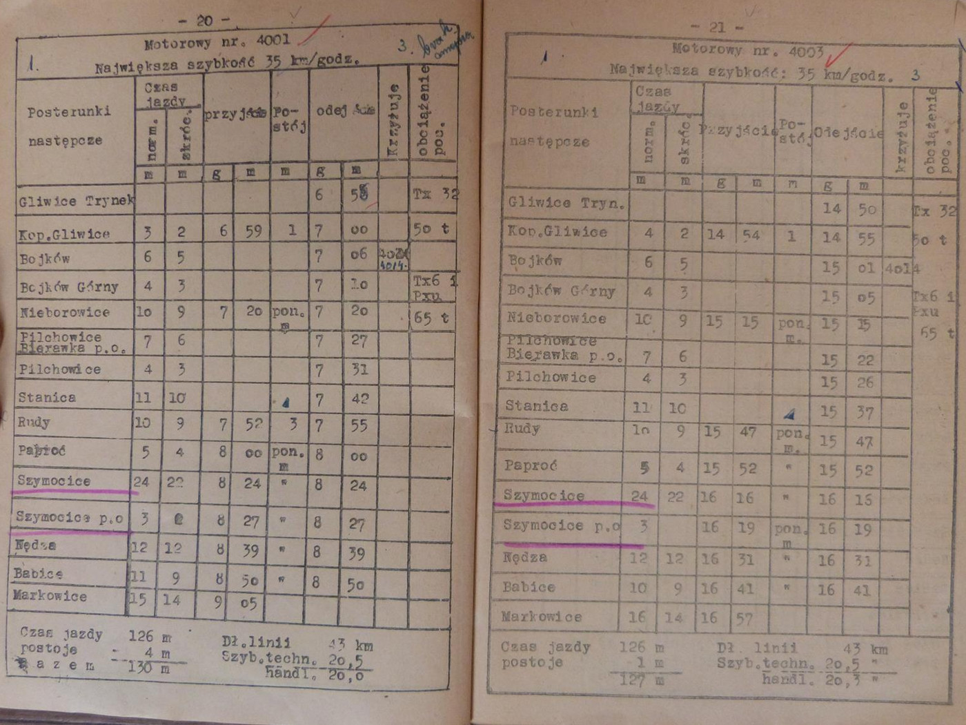 Służbowy rozkład jazdy Górnośląskich Kolei Wąskotorowych ważny od 14 maja 1950 roku