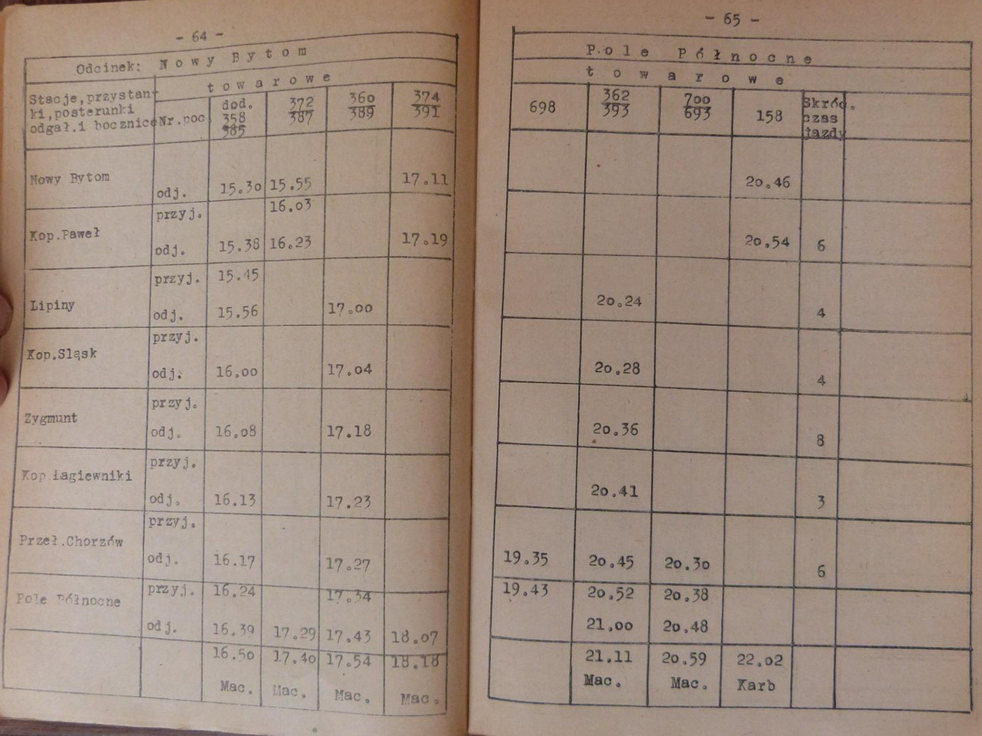 Służbowy rozkład jazdy Górnośląskich Kolei Wąskotorowych ważny od 14 maja 1950 roku