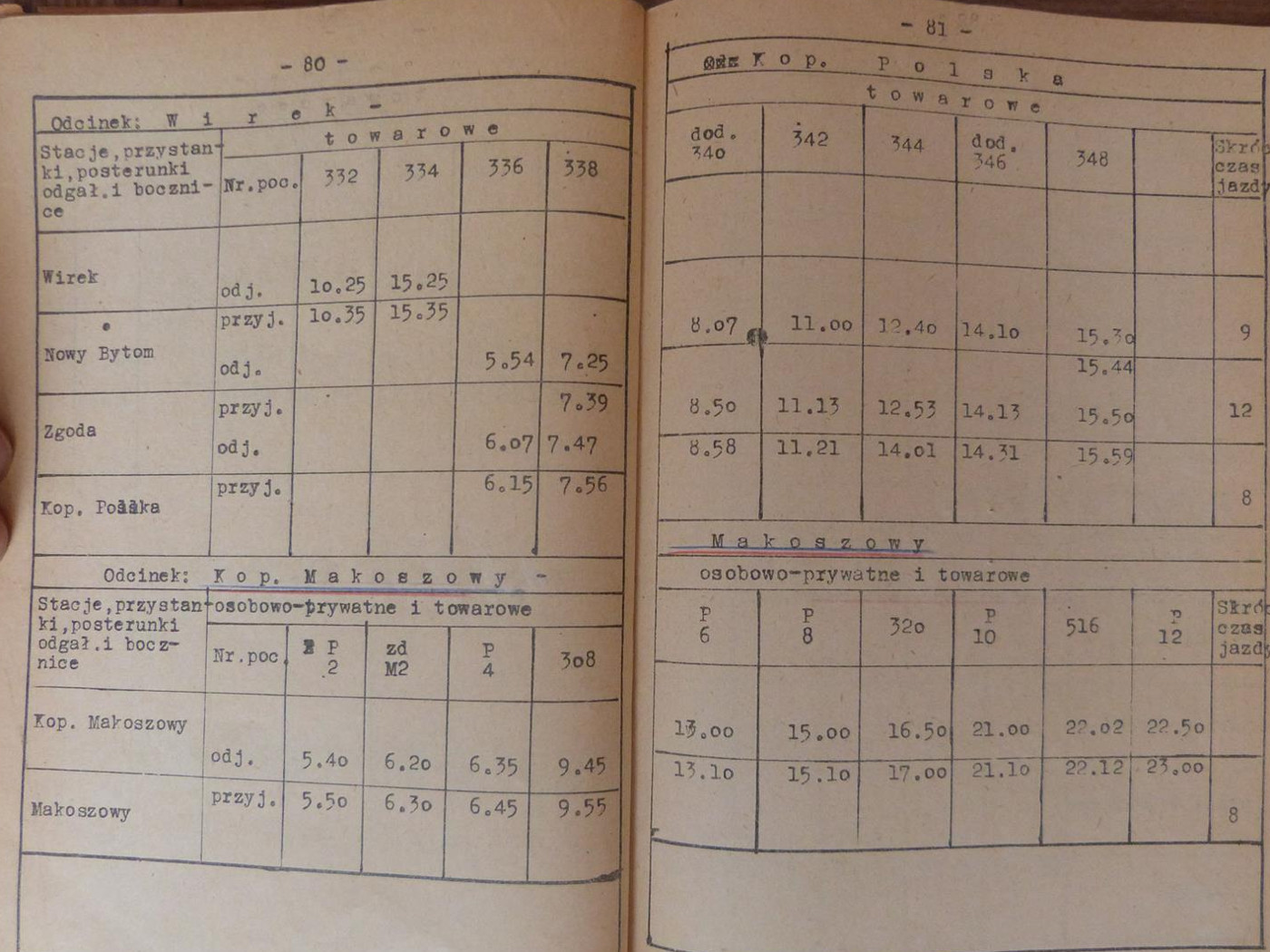 Służbowy rozkład jazdy Górnośląskich Kolei Wąskotorowych ważny od 14 maja 1950 roku