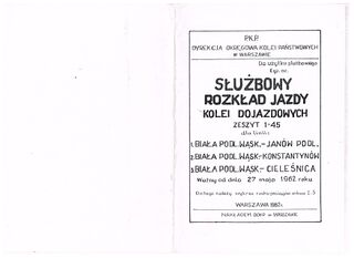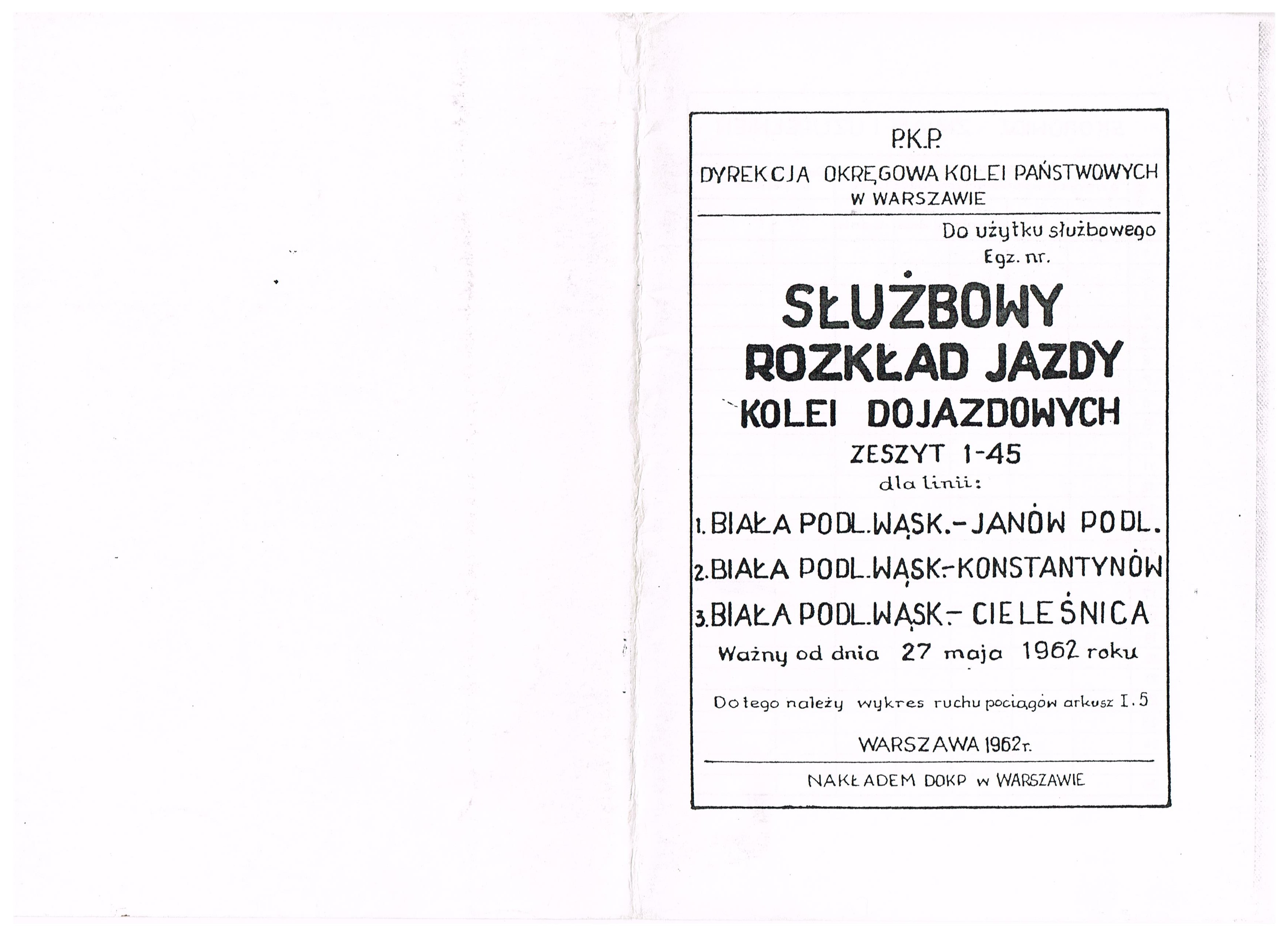Służbowy Rozkład Jazdy Kolei Dojazdowych zeszyt 1-45 Bialska KD 1962
