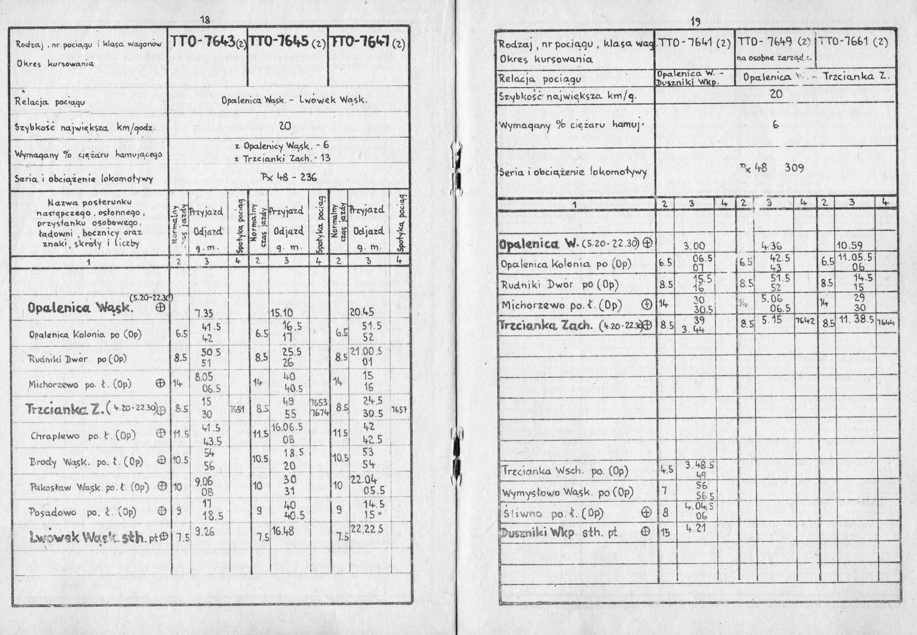 Służbowy rozkład jazdy pociągów pasażerskich i towarowych zeszyt VII-W-6 (Opalenicka Kolej Dojazdowa) ważny od 1 czerwca 1986 roku