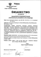 Świadectwo typu nr B/2004/190 - pierwsza strona