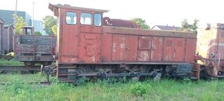Odstawiona lokomotywa CWO-Lyd2-02 należąca do Nadwiślańskiej Kolejki Wąskotorowej. 5.6.2021r. Karczmiska (woj. lubelskie)