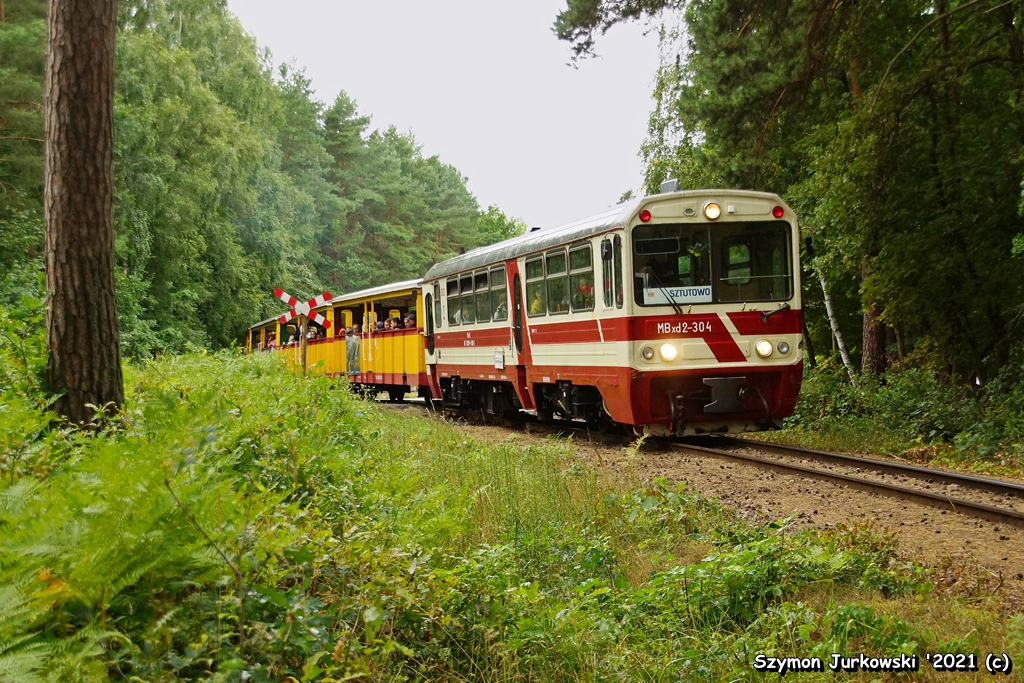 06.08.2021 - Stegna - wagon motorowy MBxd2-304 z pociągiem do Sztutowa.