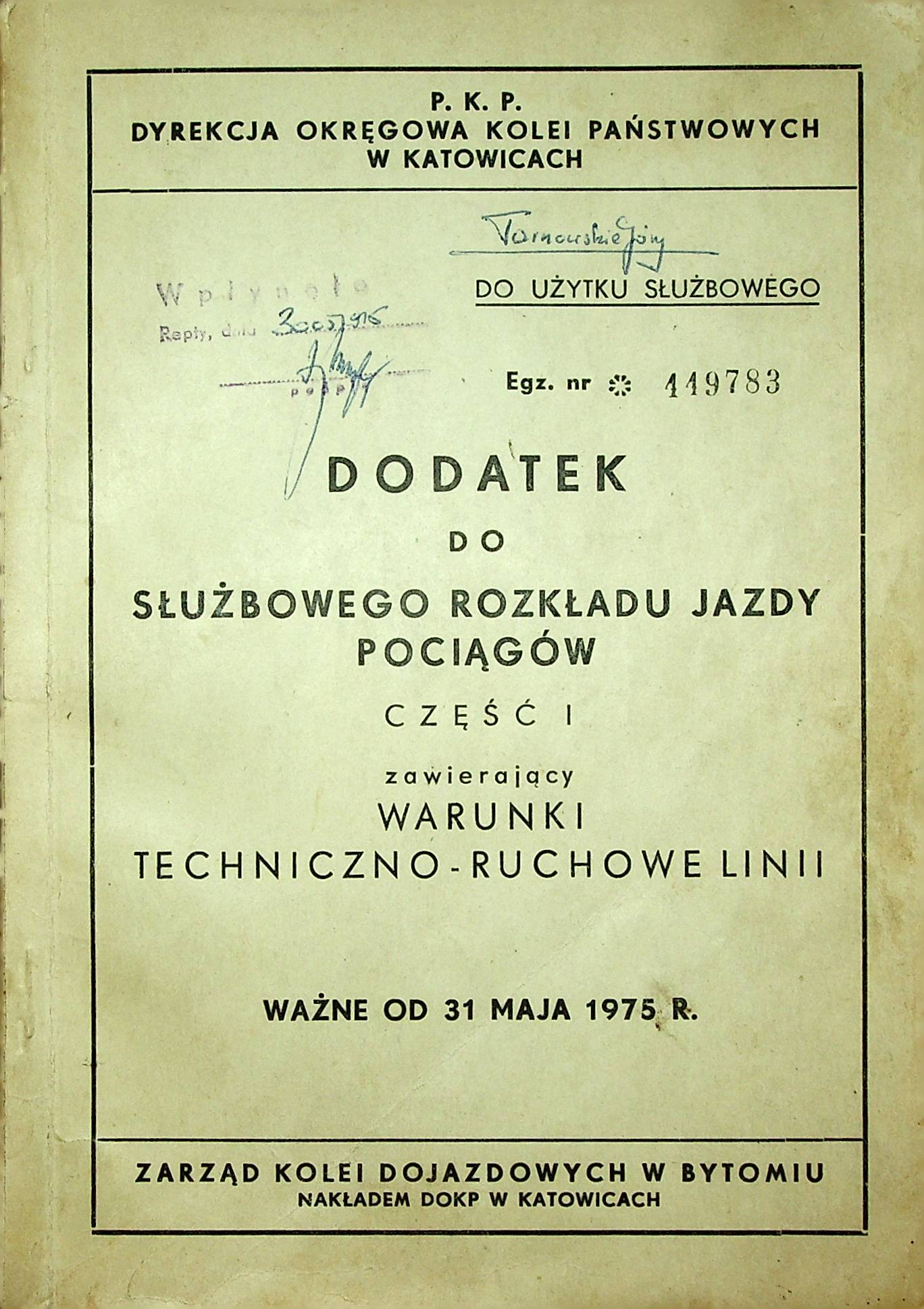 Wydawca     Dyrekcja Okręgowa Kolei Państwowych w Katowicach - Zarząd Kolei Dojazdowych w Bytomiu