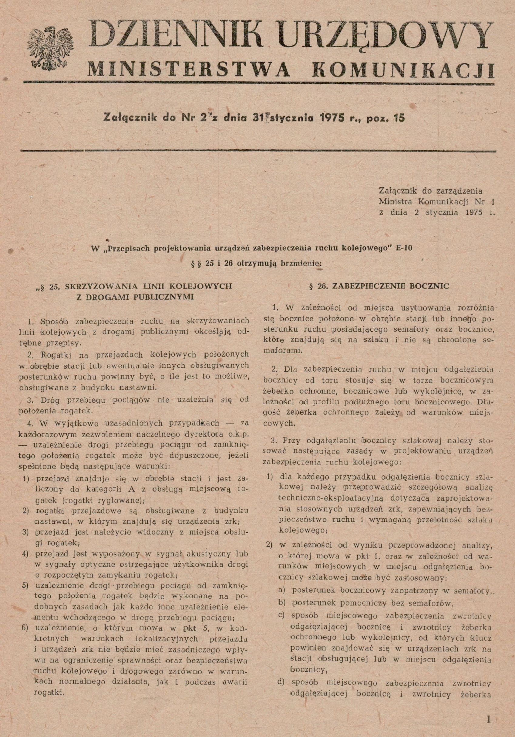 | Strona(y) | Dziennik Urzędowy Ministerstwa Komunikacji (załącznik do numeru 2 z dnia 31 stycznia 1975 roku, pozycja 15) – strona 1 | ||