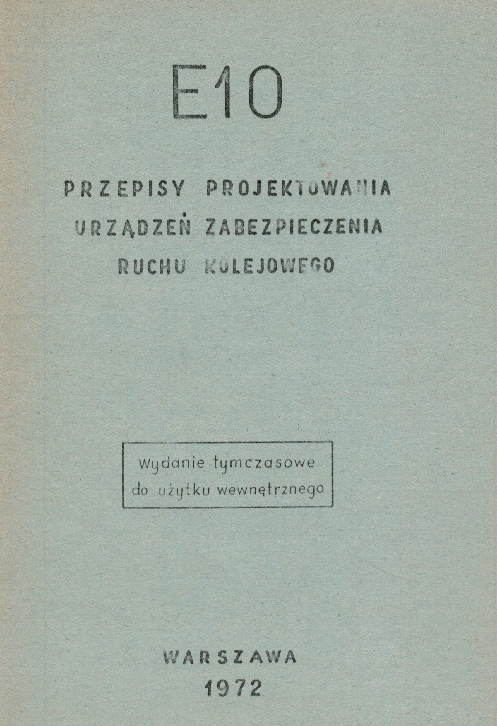 Tytuł     E10 - Przepisy projektowania urządzeń zabezpieczenia ruchu kolejowego (1972)