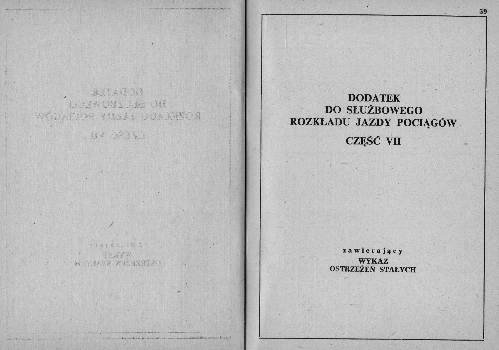 Dodatek do Służbowego Rozkładu Jazdy Pociągów GKW (części I, V, VII) ważny od 1 VII 1981 roku