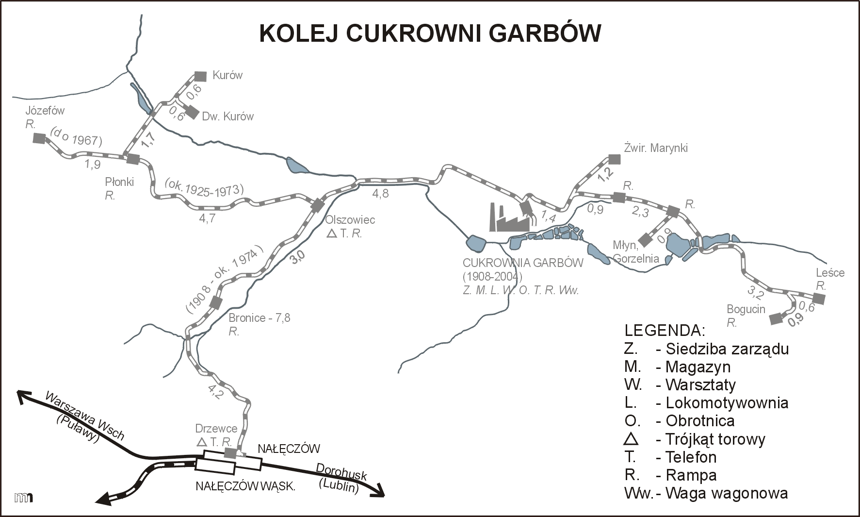 Schemat kolei Cukrowni Garbów na podstawie map archiwalnych.