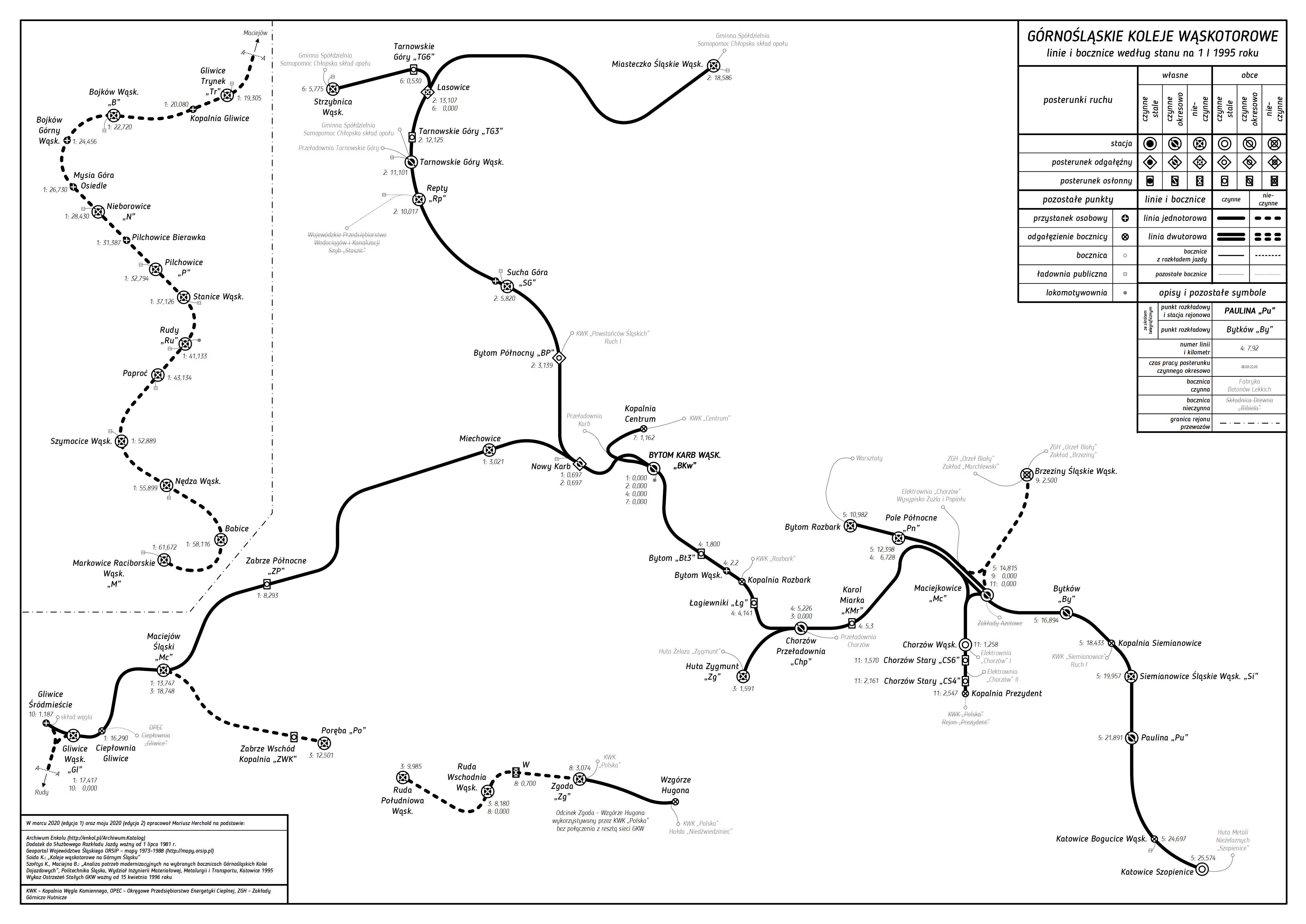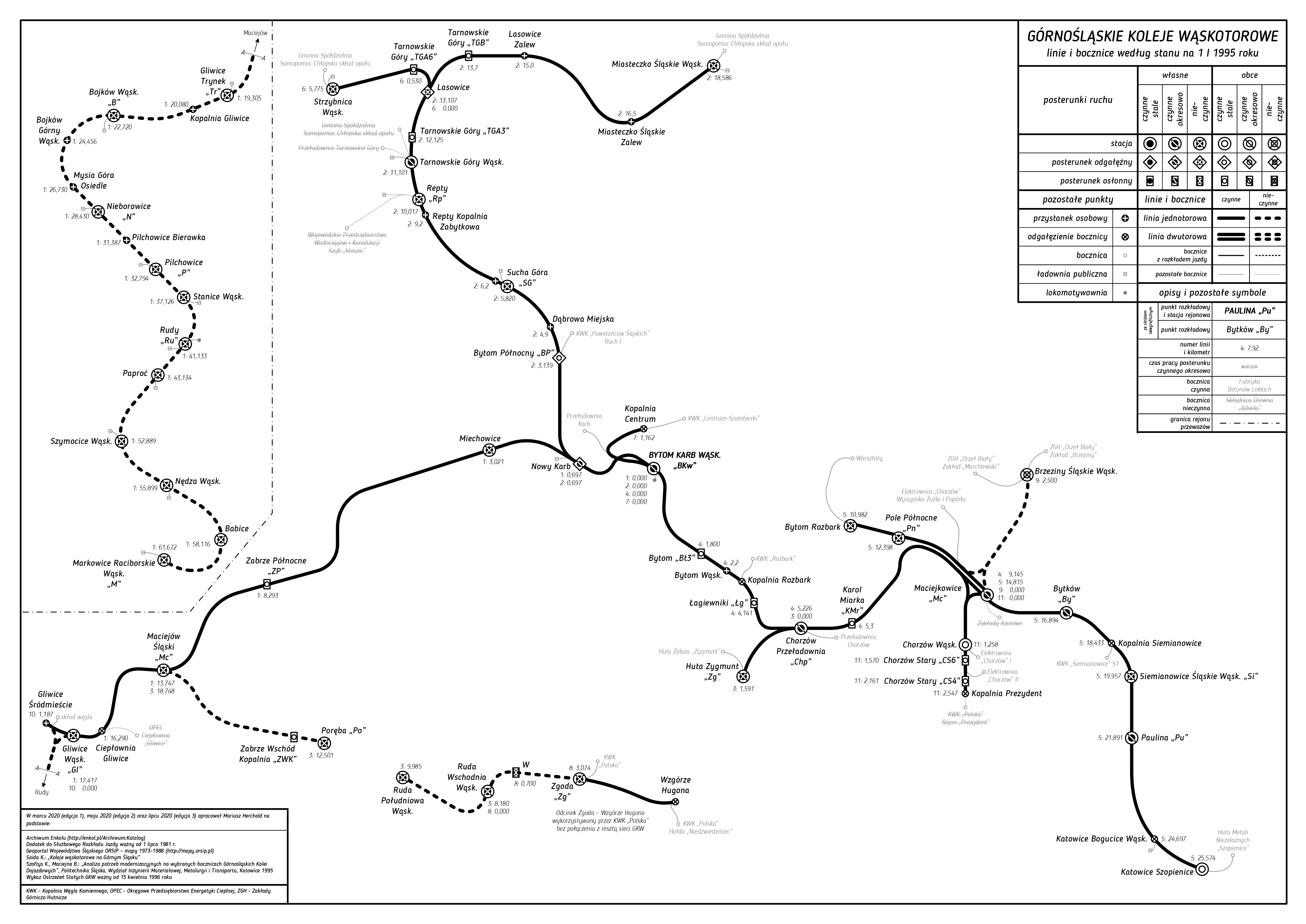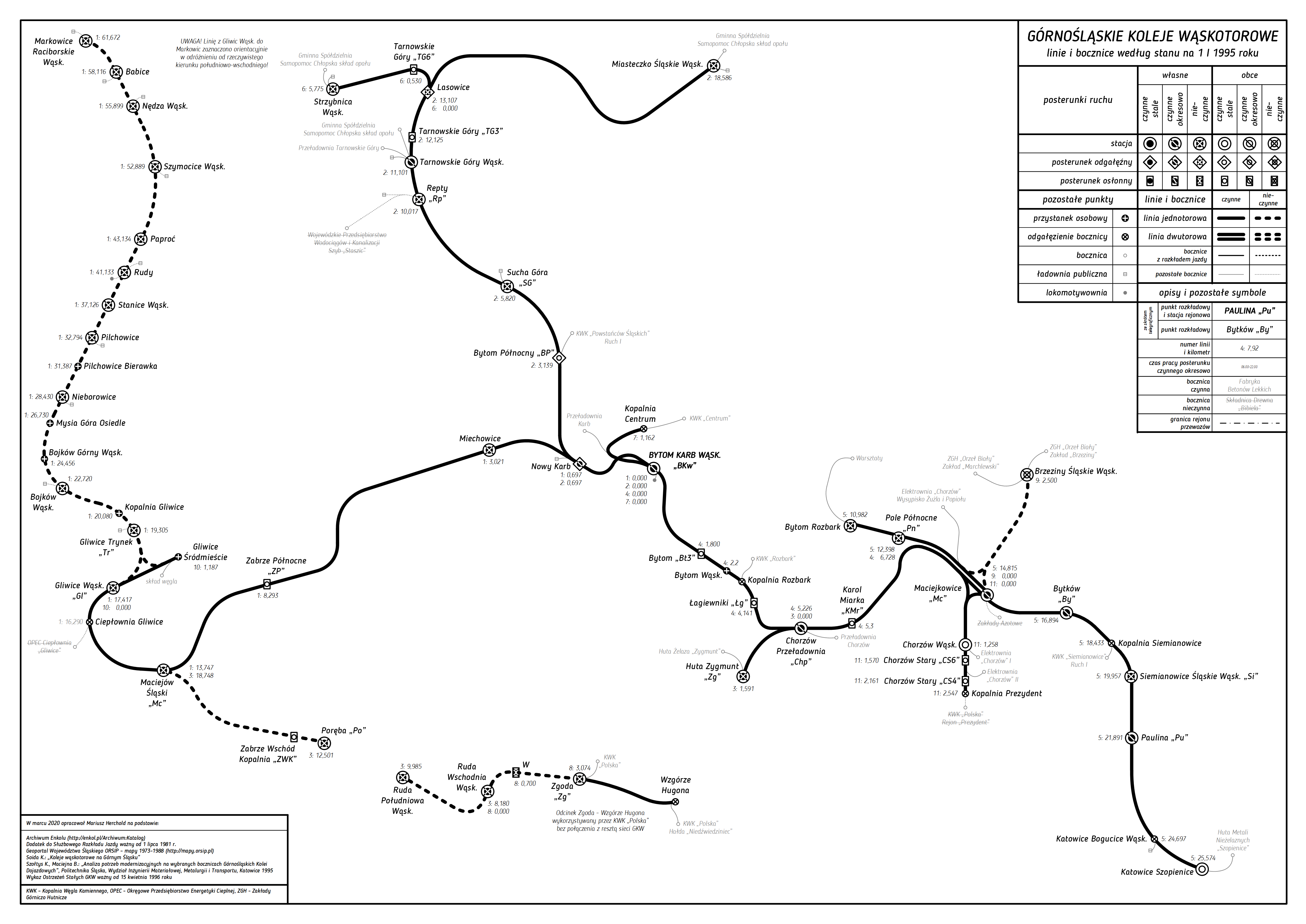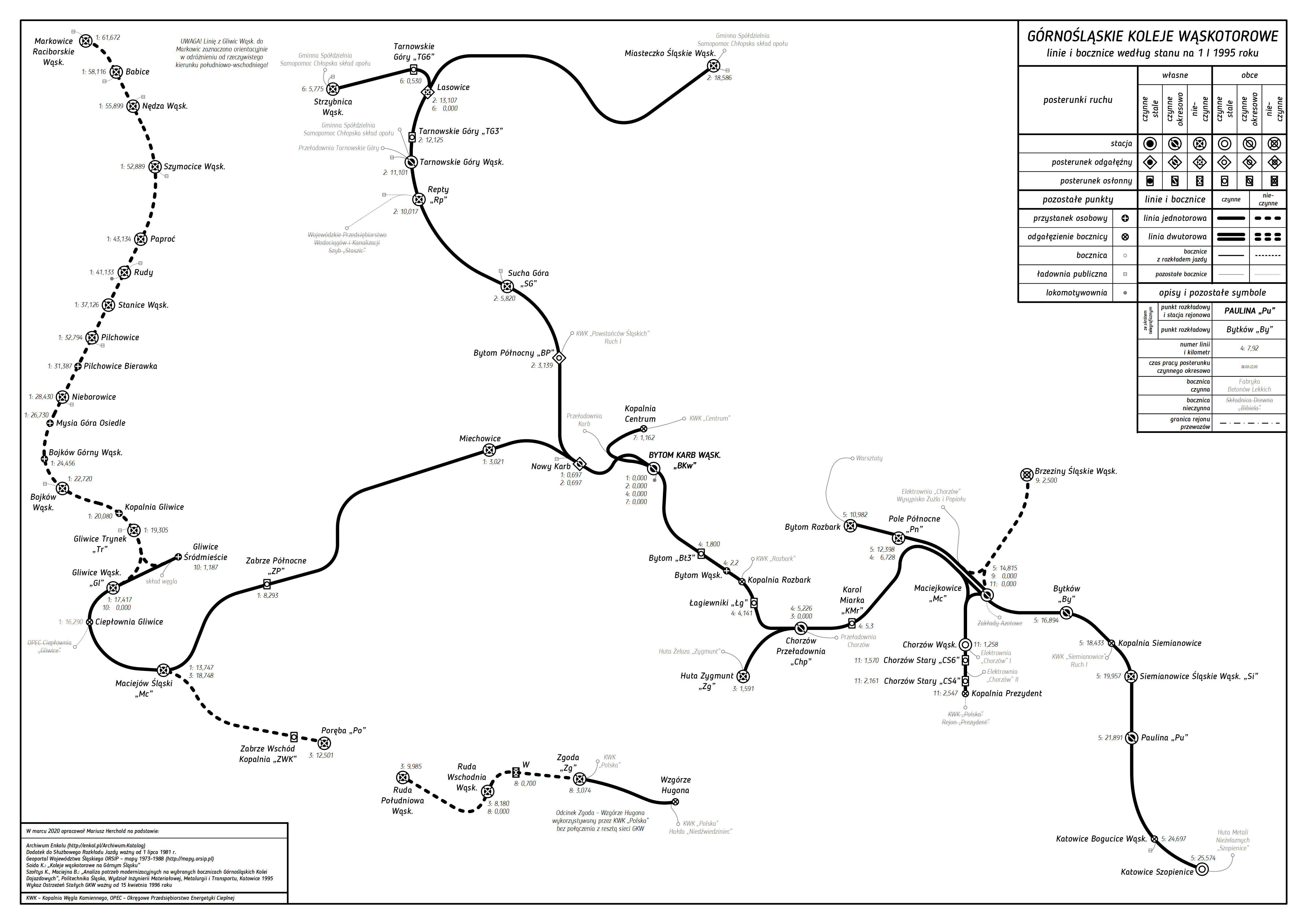 Górnośląskie Koleje Wąskotorowe - linie i bocznice według stanu na 1 I 1995