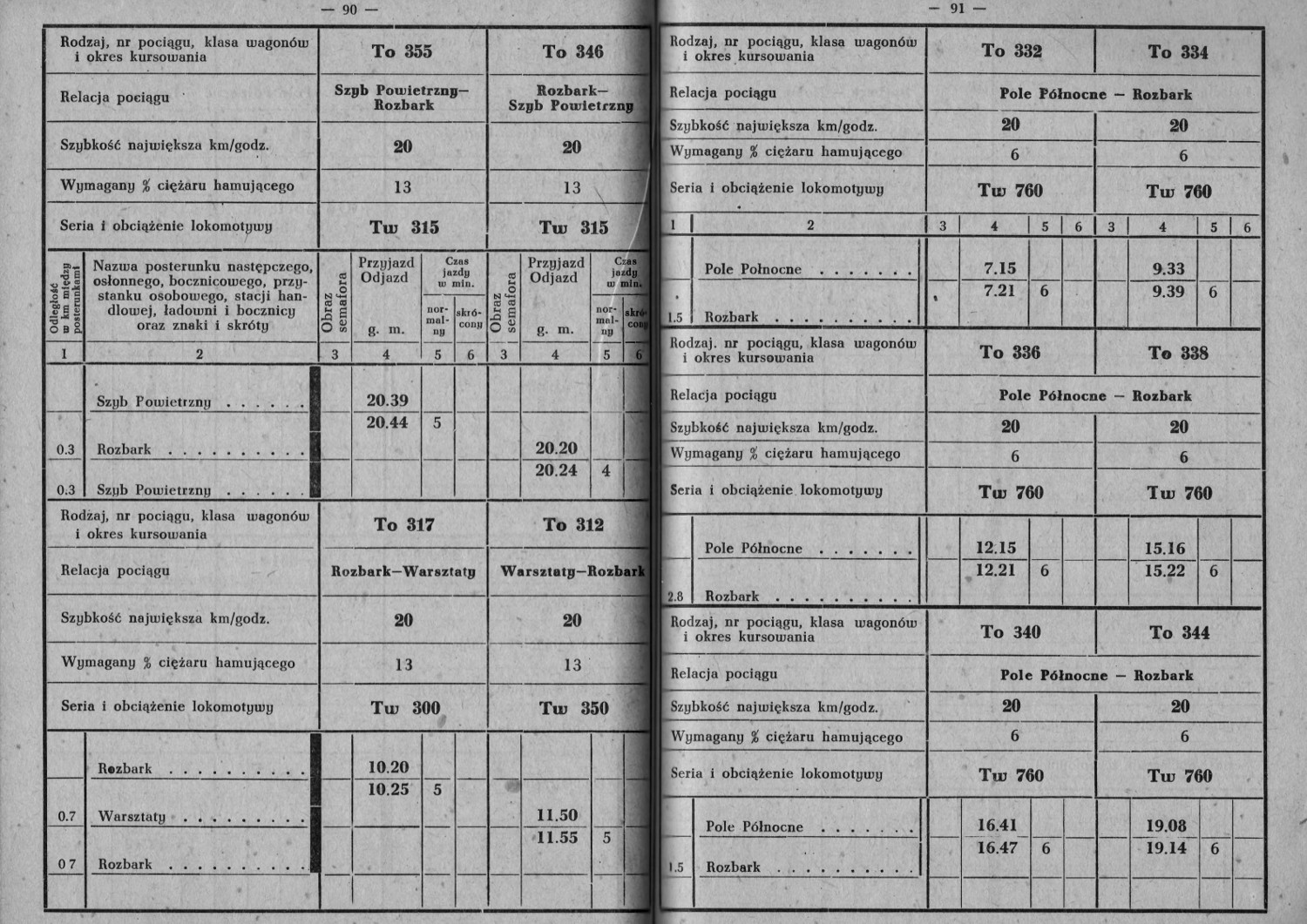 Służbowy rozkład jazdy Górnośląskich Kolei Wąskotorowych ważny od 31 maja 1959 roku
