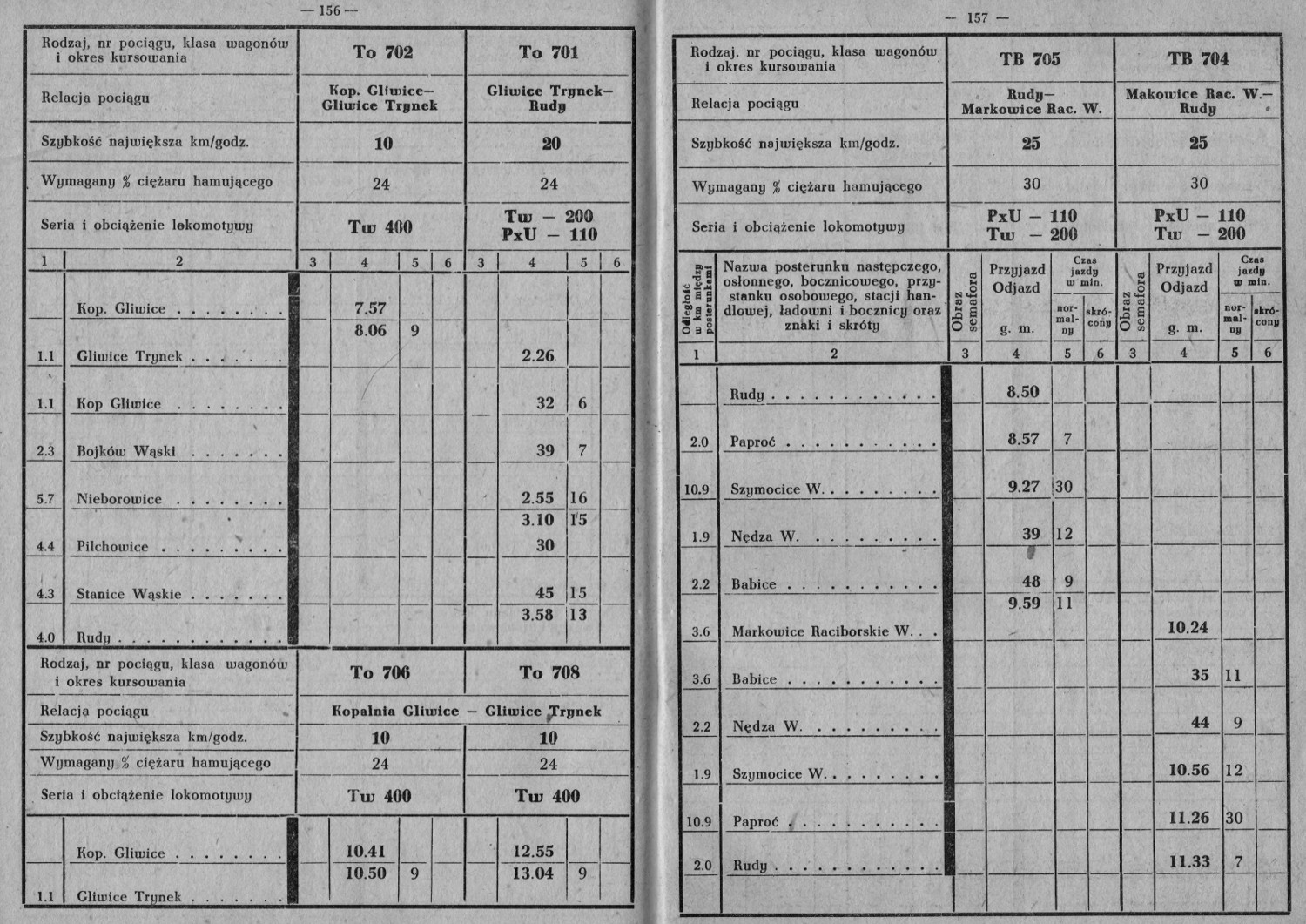 Służbowy rozkład jazdy Górnośląskich Kolei Wąskotorowych ważny od 31 maja 1959 roku