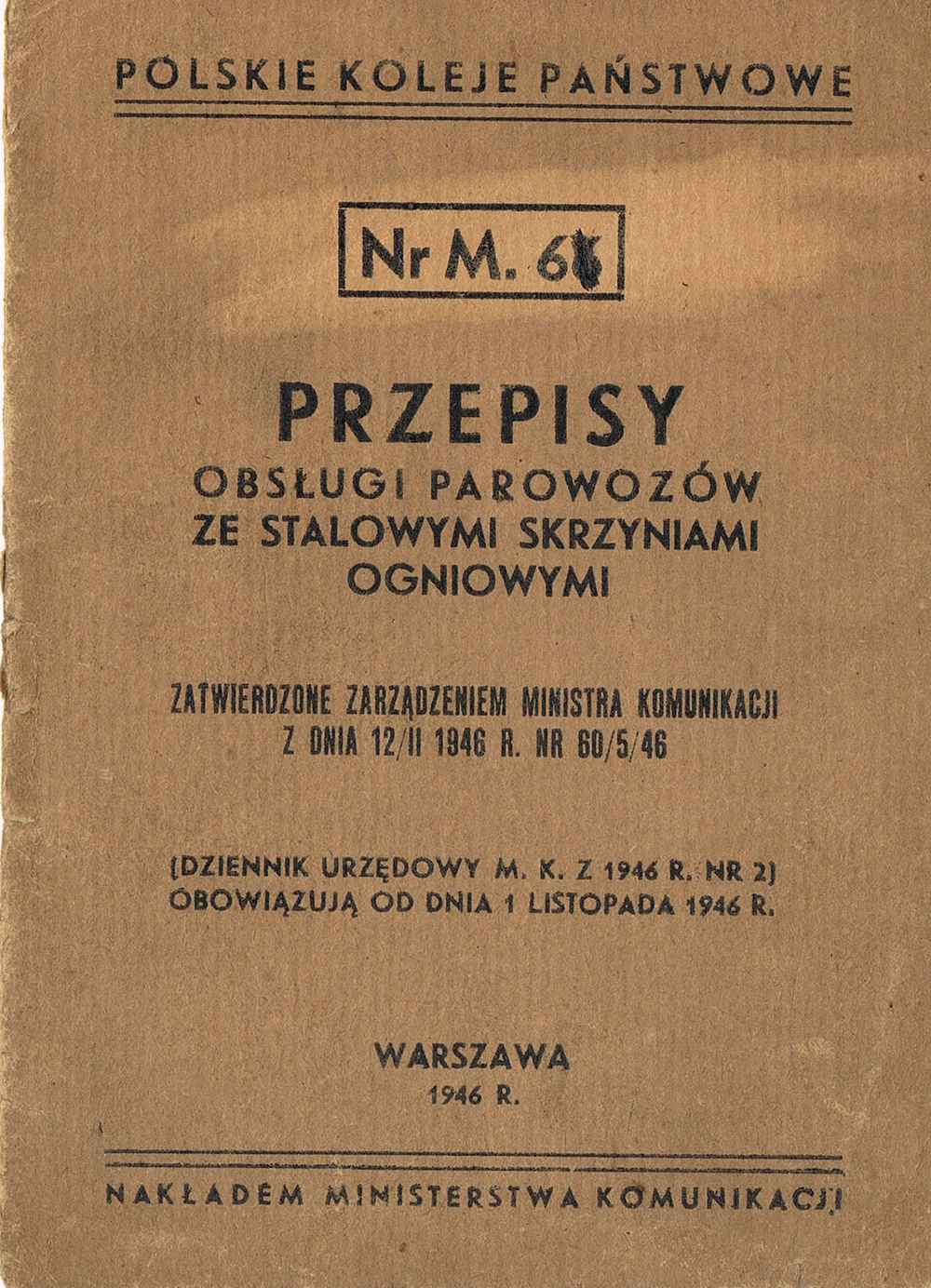 Przepisy obsługi parowozów ze stalowymi skrzyniami ogniowymi - M6. Okładka.