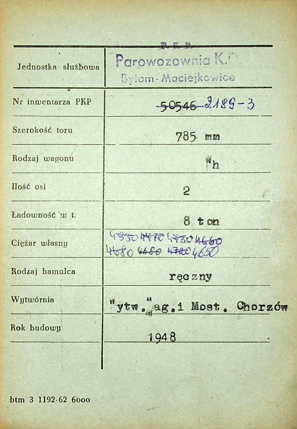 Karta wagonu Górnośląskich Kolei Wąskotorowych |