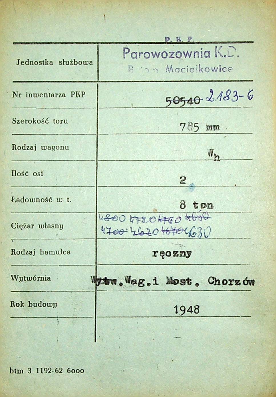 Karta wagonu Górnośląskich Kolei Wąskotorowych |