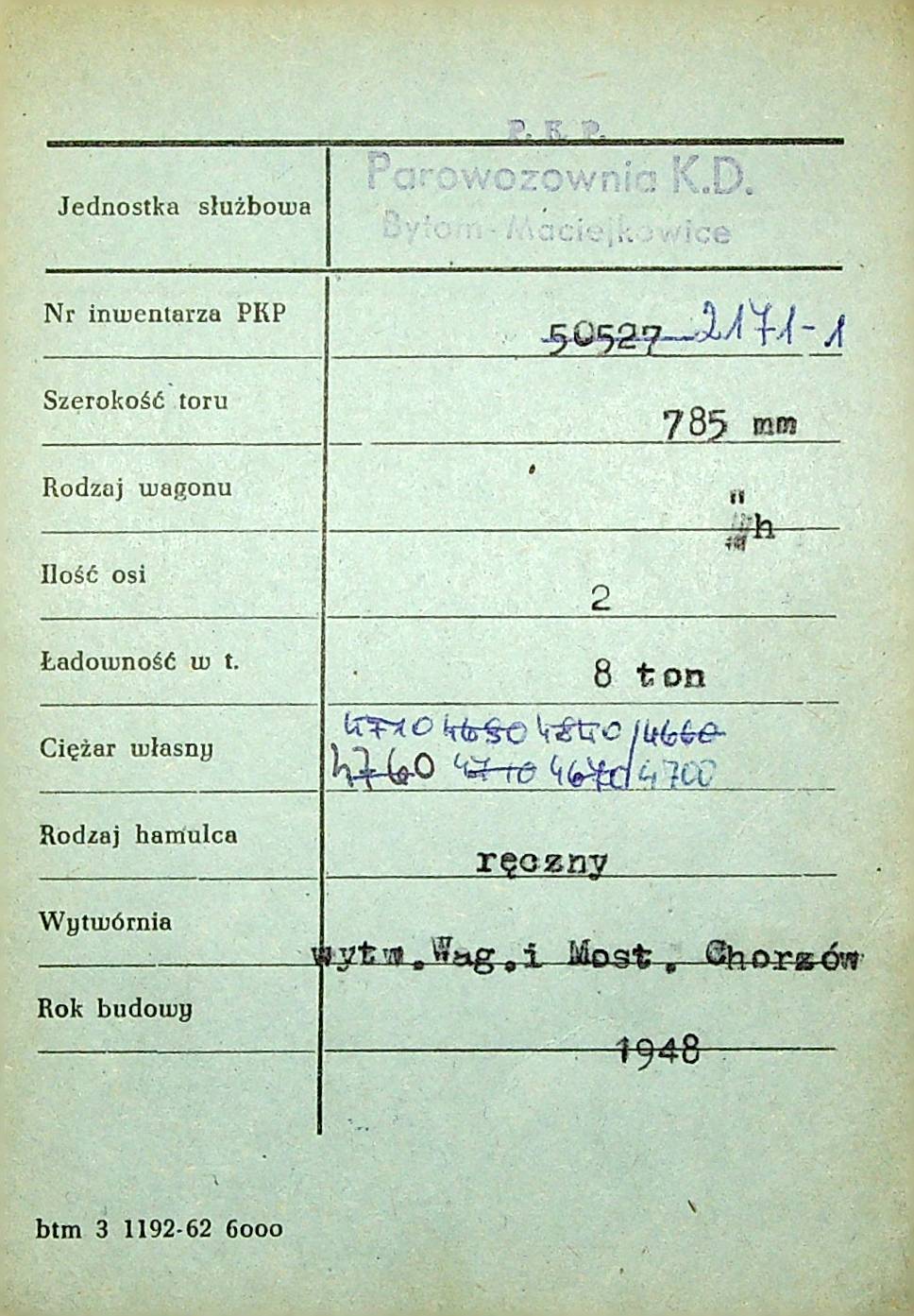 Karta wagonu Górnośląskich Kolei Wąskotorowych |