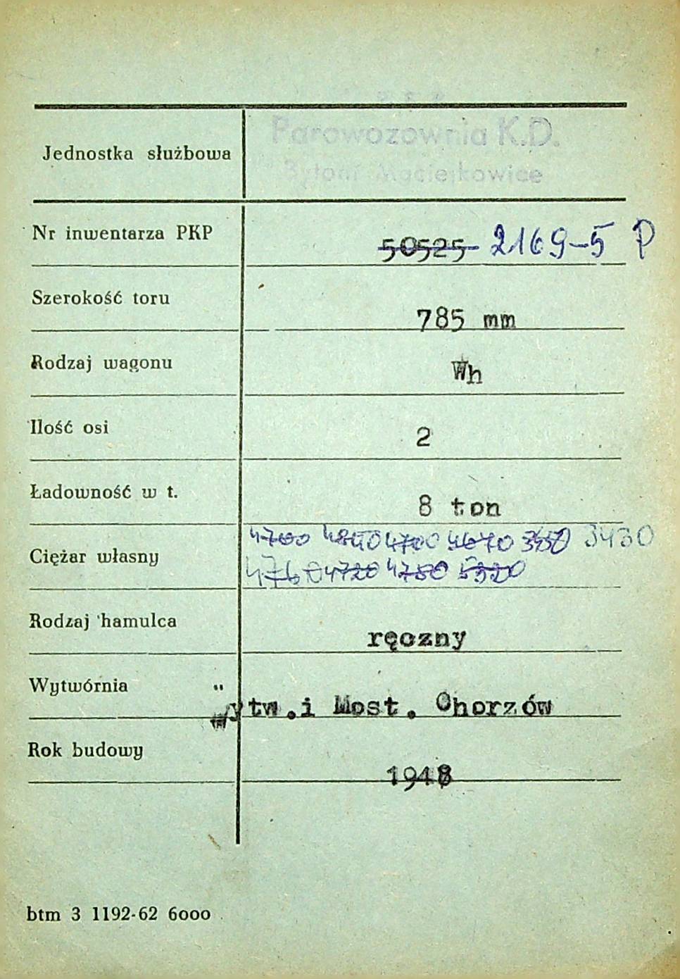 Karta wagonu Górnośląskich Kolei Wąskotorowych |