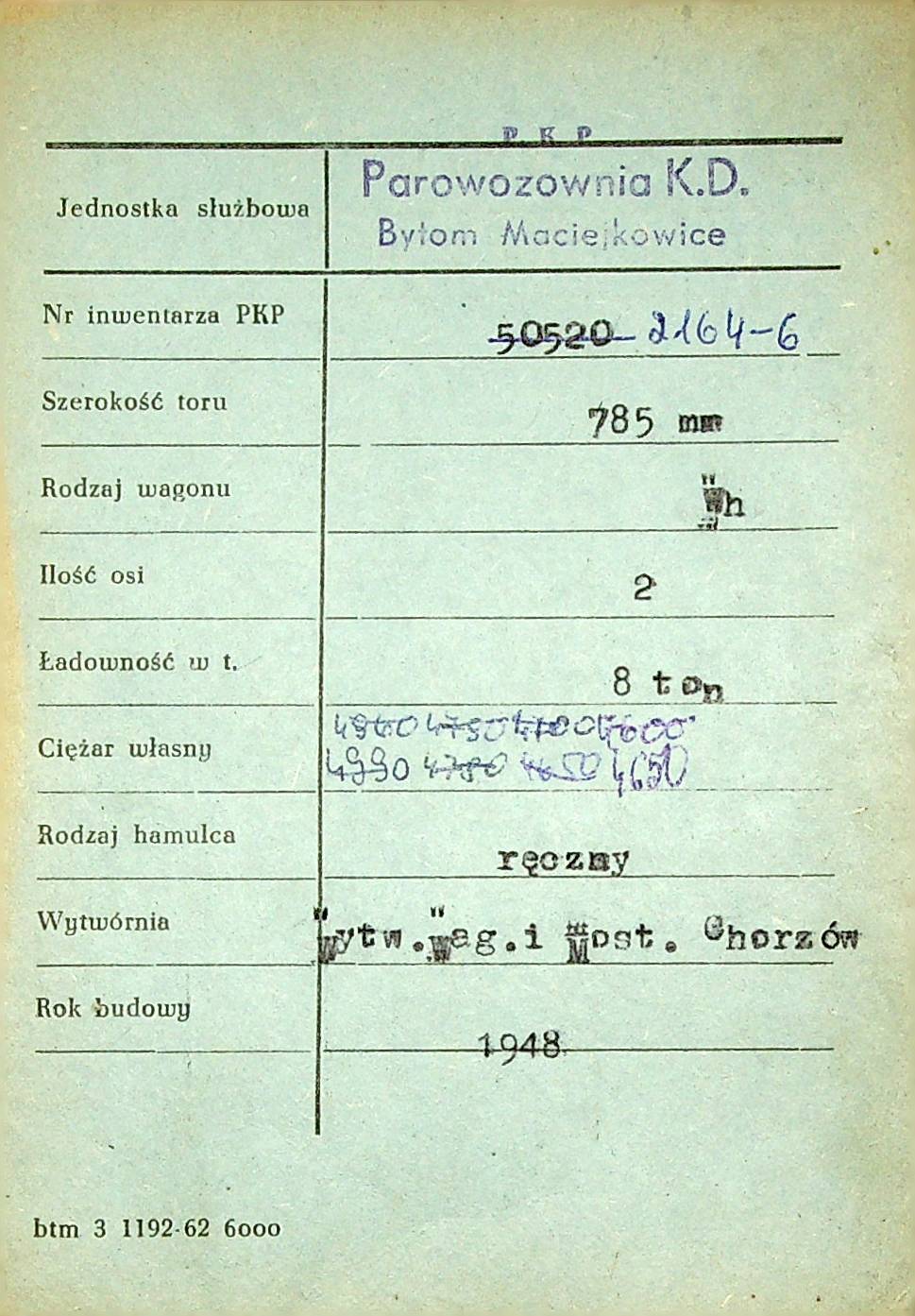 Karta wagonu Górnośląskich Kolei Wąskotorowych |