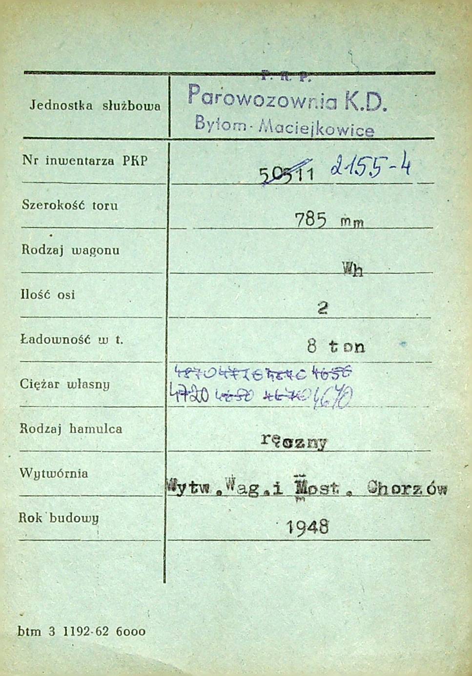 Karta wagonu Górnośląskich Kolei Wąskotorowych |
