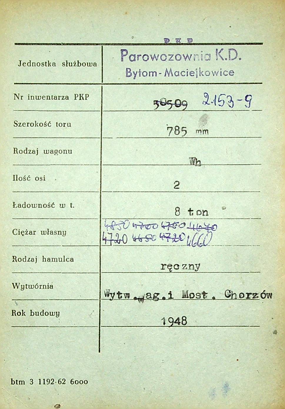 Karta wagonu Górnośląskich Kolei Wąskotorowych |