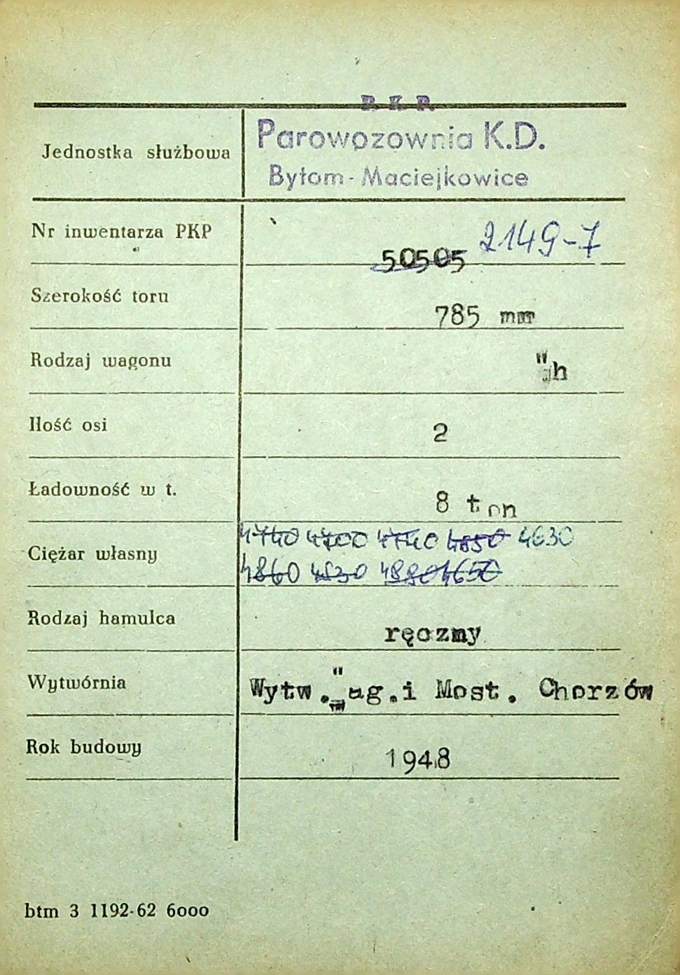 Karta wagonu Górnośląskich Kolei Wąskotorowych |