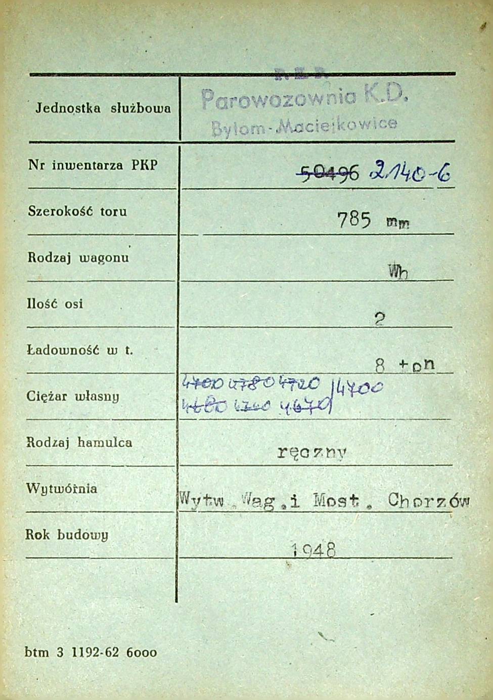 Karta wagonu Górnośląskich Kolei Wąskotorowych |