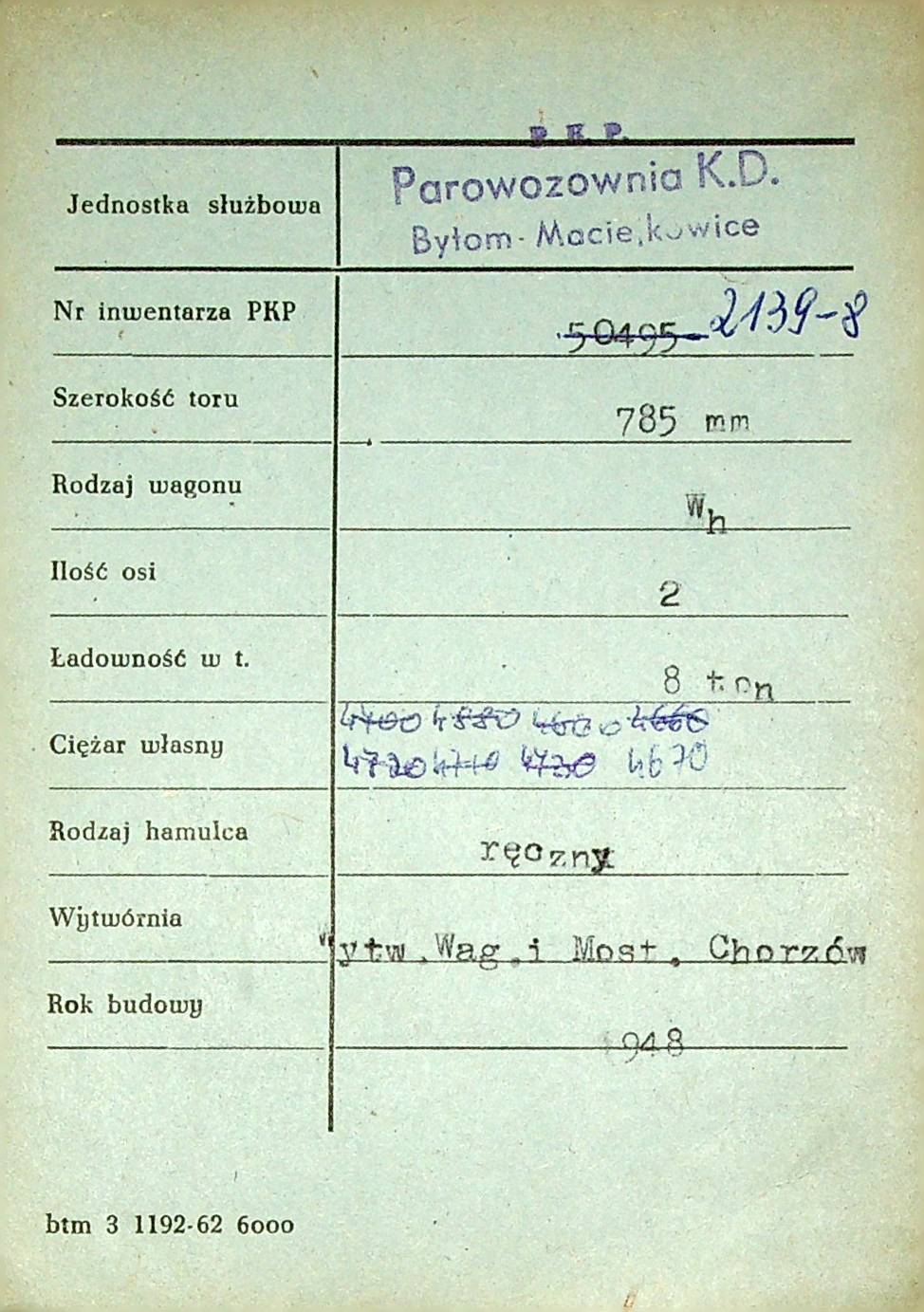 Karta wagonu Górnośląskich Kolei Wąskotorowych |
