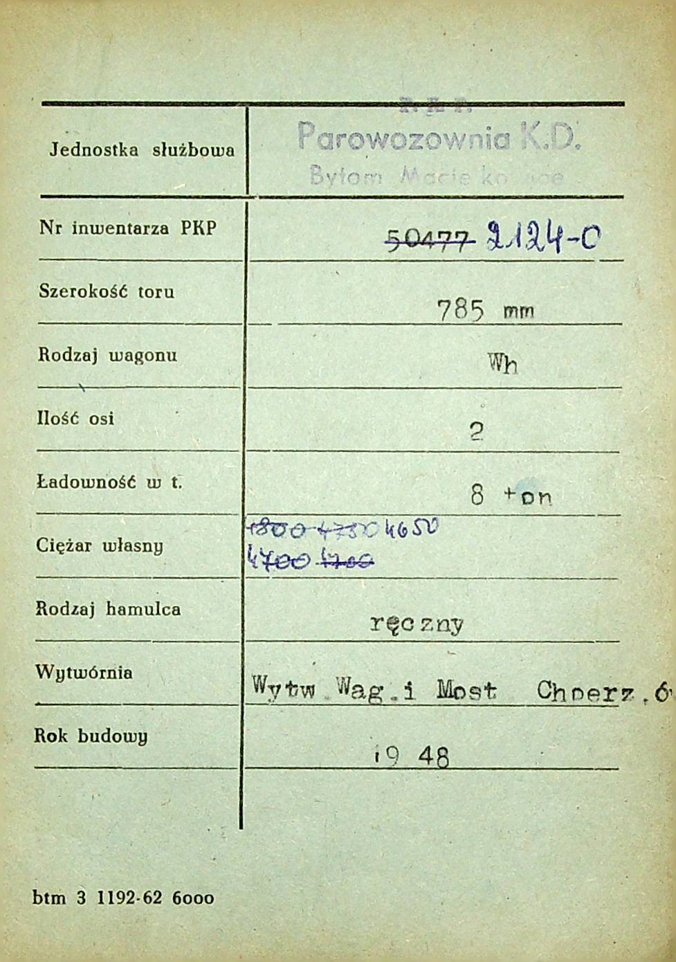 Karta wagonu Górnośląskich Kolei Wąskotorowych |