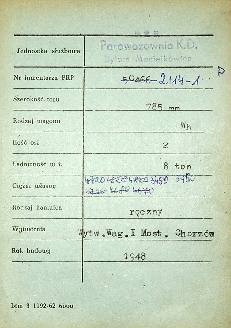 Karta wagonu Górnośląskich Kolei Wąskotorowych |