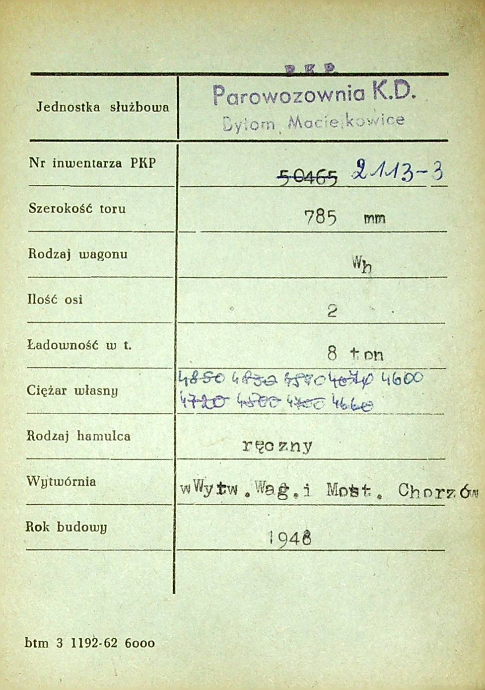 Karta wagonu Górnośląskich Kolei Wąskotorowych |