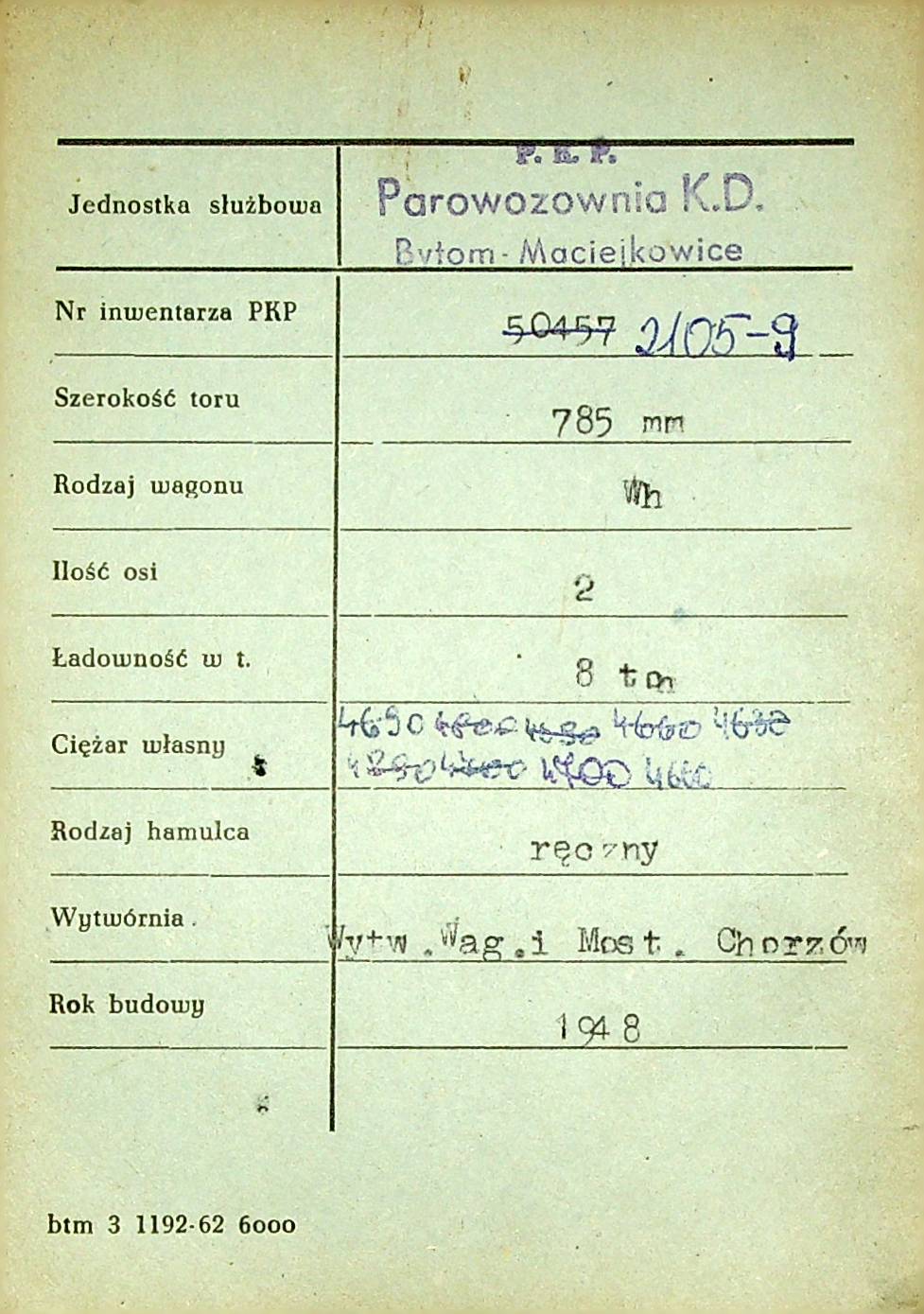 Karta wagonu Górnośląskich Kolei Wąskotorowych |
