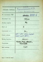 Karta wagonu Górnośląskich Kolei Wąskotorowych |