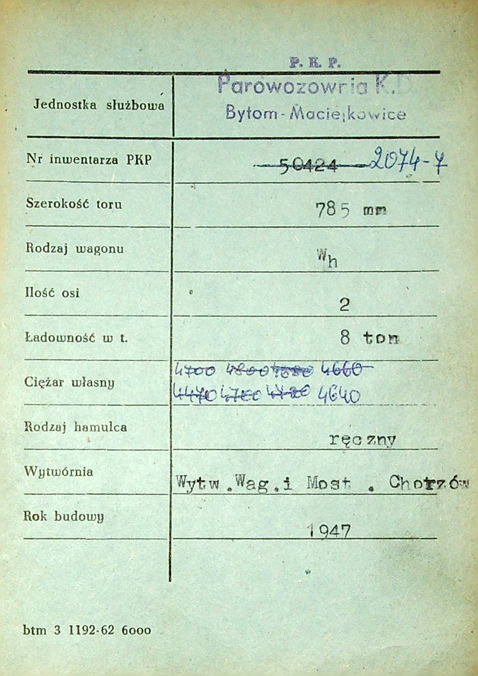 Karta wagonu Górnośląskich Kolei Wąskotorowych |