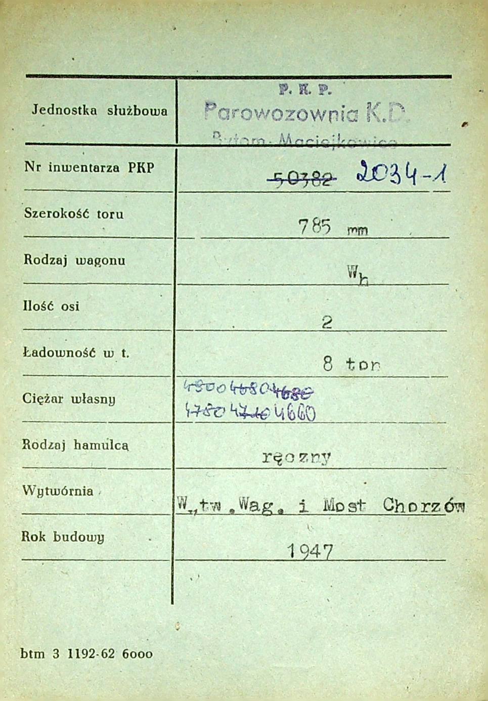 Karta wagonu Górnośląskich Kolei Wąskotorowych |