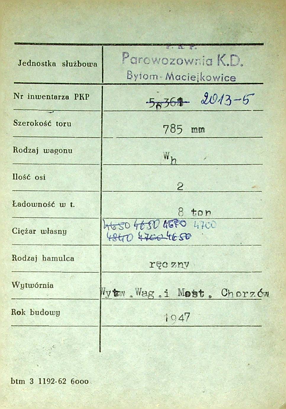 Karta wagonu Górnośląskich Kolei Wąskotorowych |