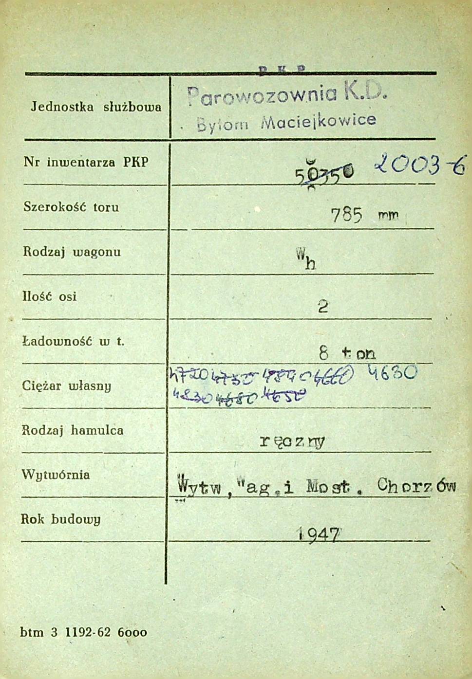 Karta wagonu Górnośląskich Kolei Wąskotorowych |