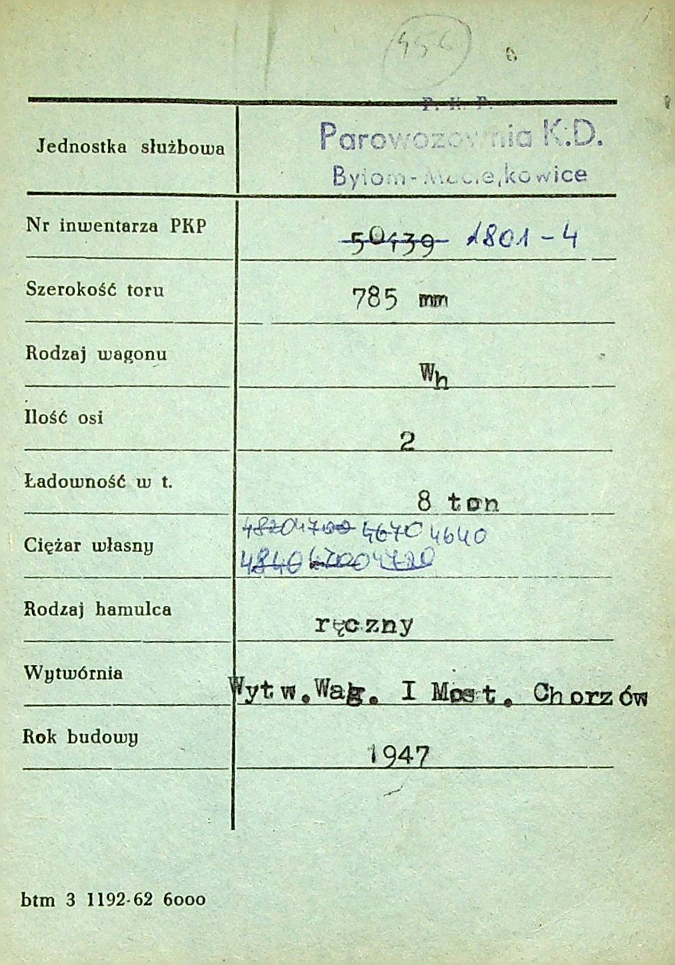 Karta wagonu Górnośląskich Kolei Wąskotorowych |
