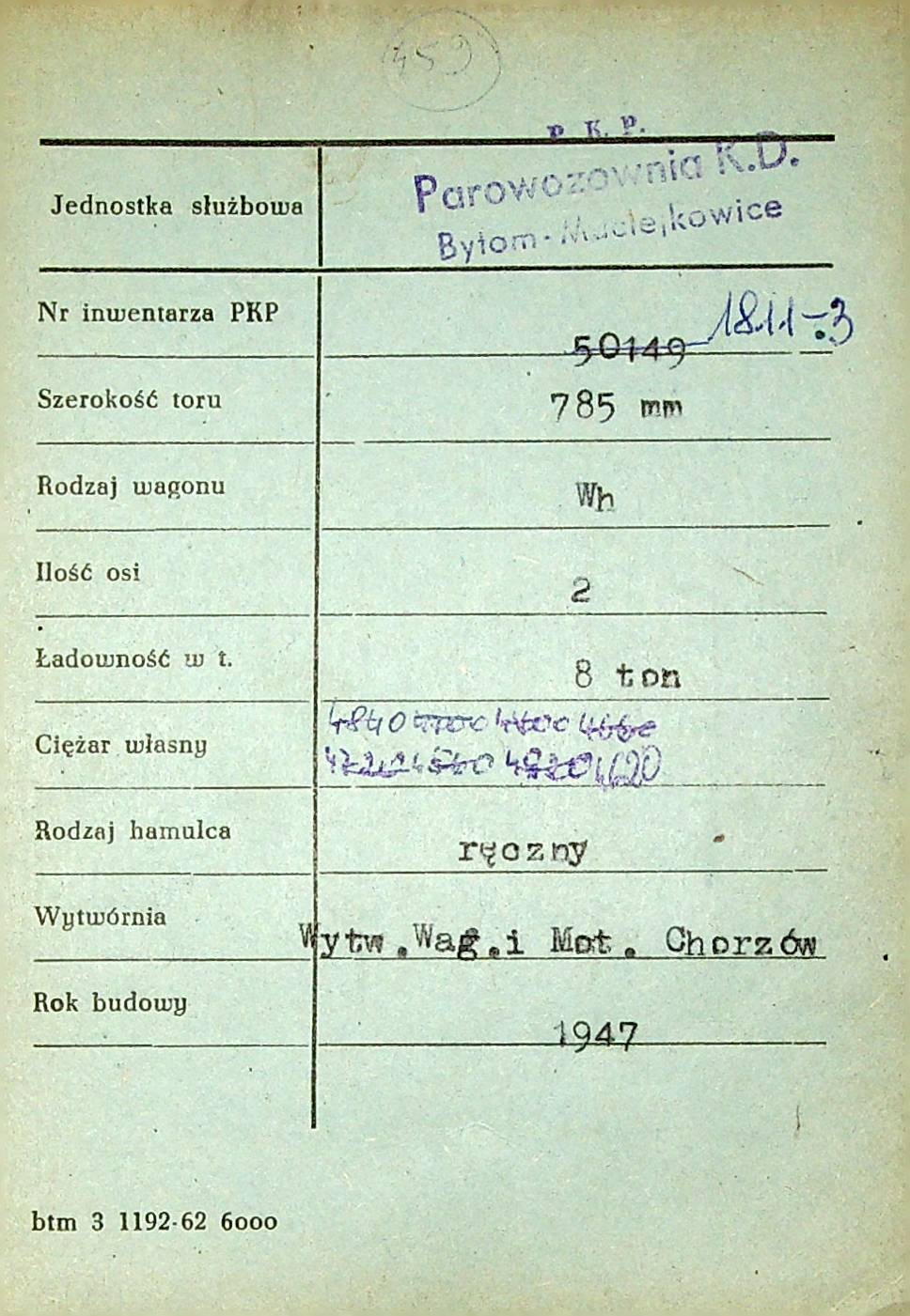 Karta wagonu Górnośląskich Kolei Wąskotorowych |