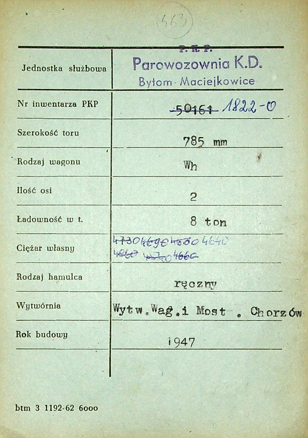 Karta wagonu Górnośląskich Kolei Wąskotorowych |