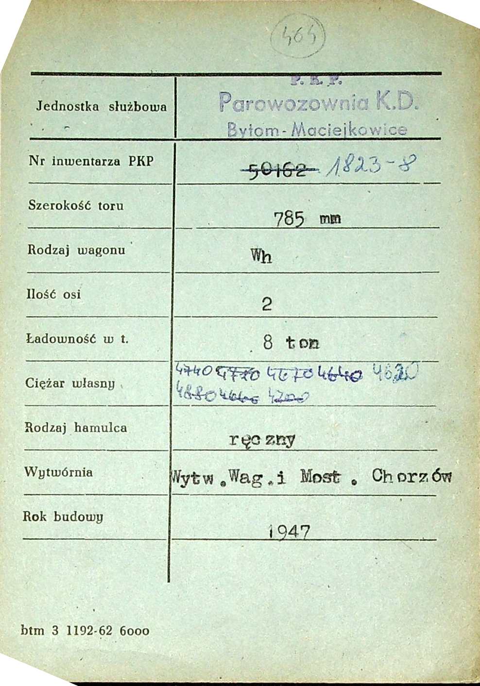 Karta wagonu Górnośląskich Kolei Wąskotorowych |