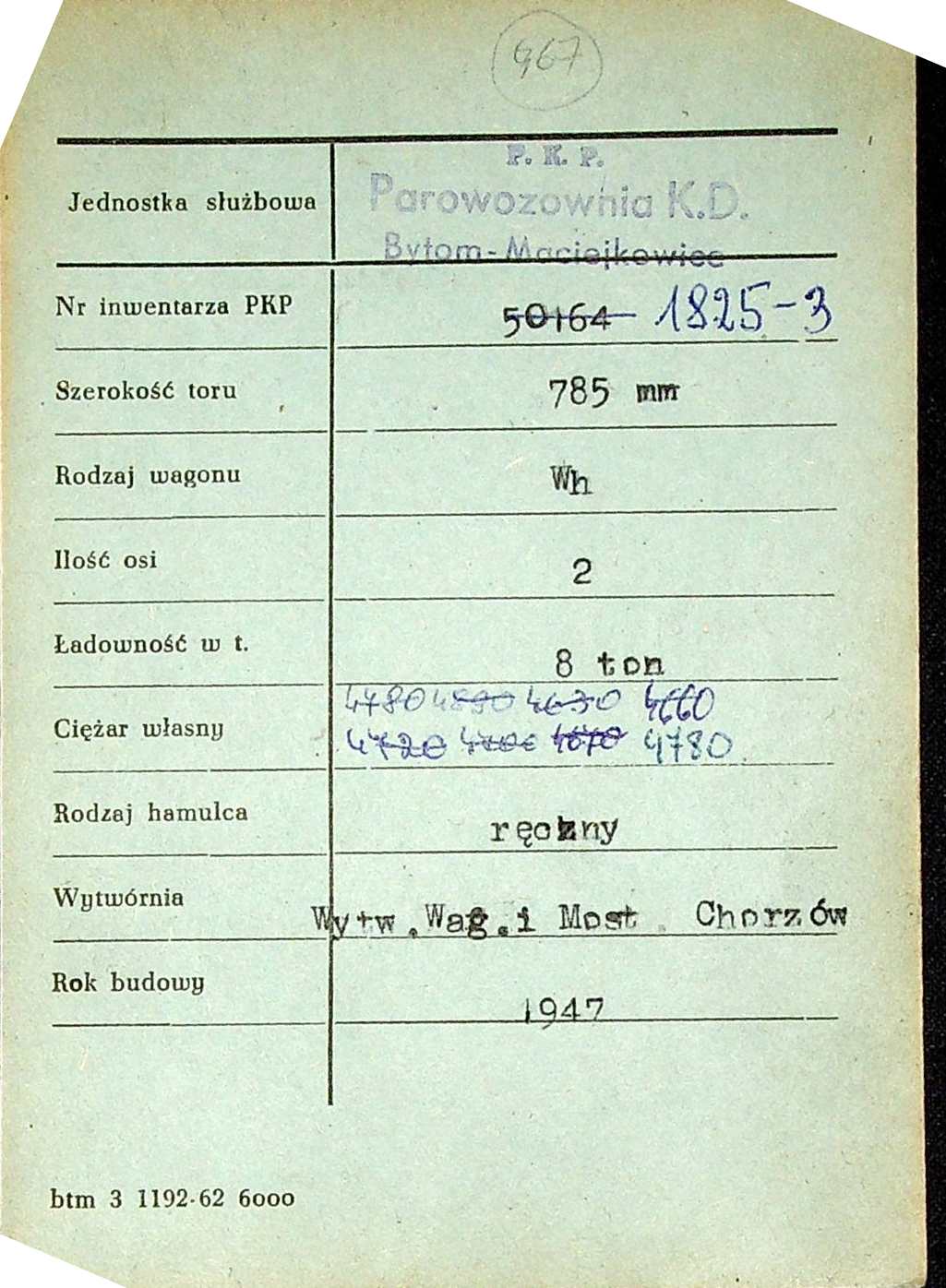 Karta wagonu Górnośląskich Kolei Wąskotorowych |