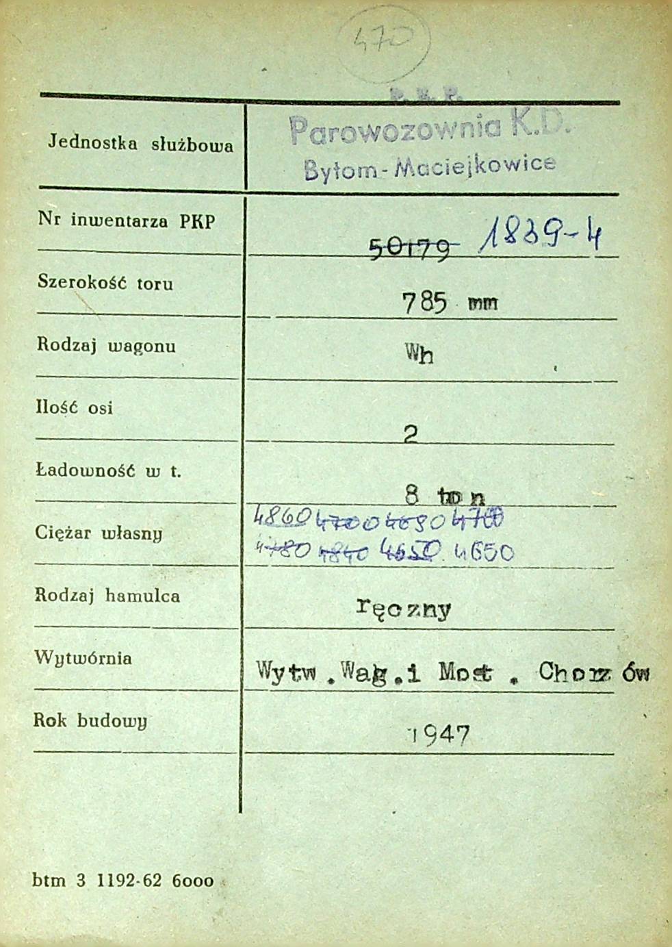 Karta wagonu Górnośląskich Kolei Wąskotorowych |
