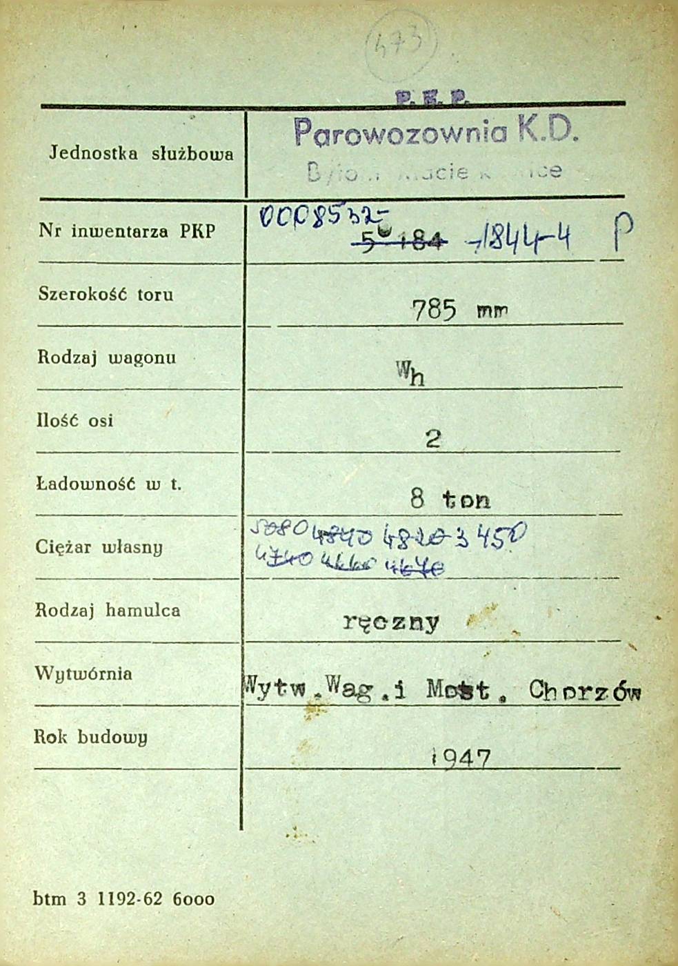 Karta wagonu Górnośląskich Kolei Wąskotorowych |