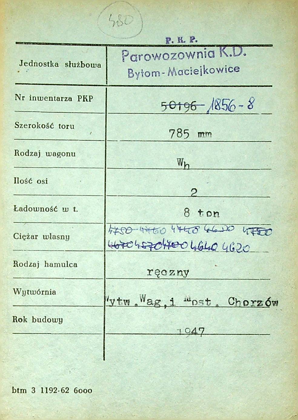 Karta wagonu Górnośląskich Kolei Wąskotorowych |