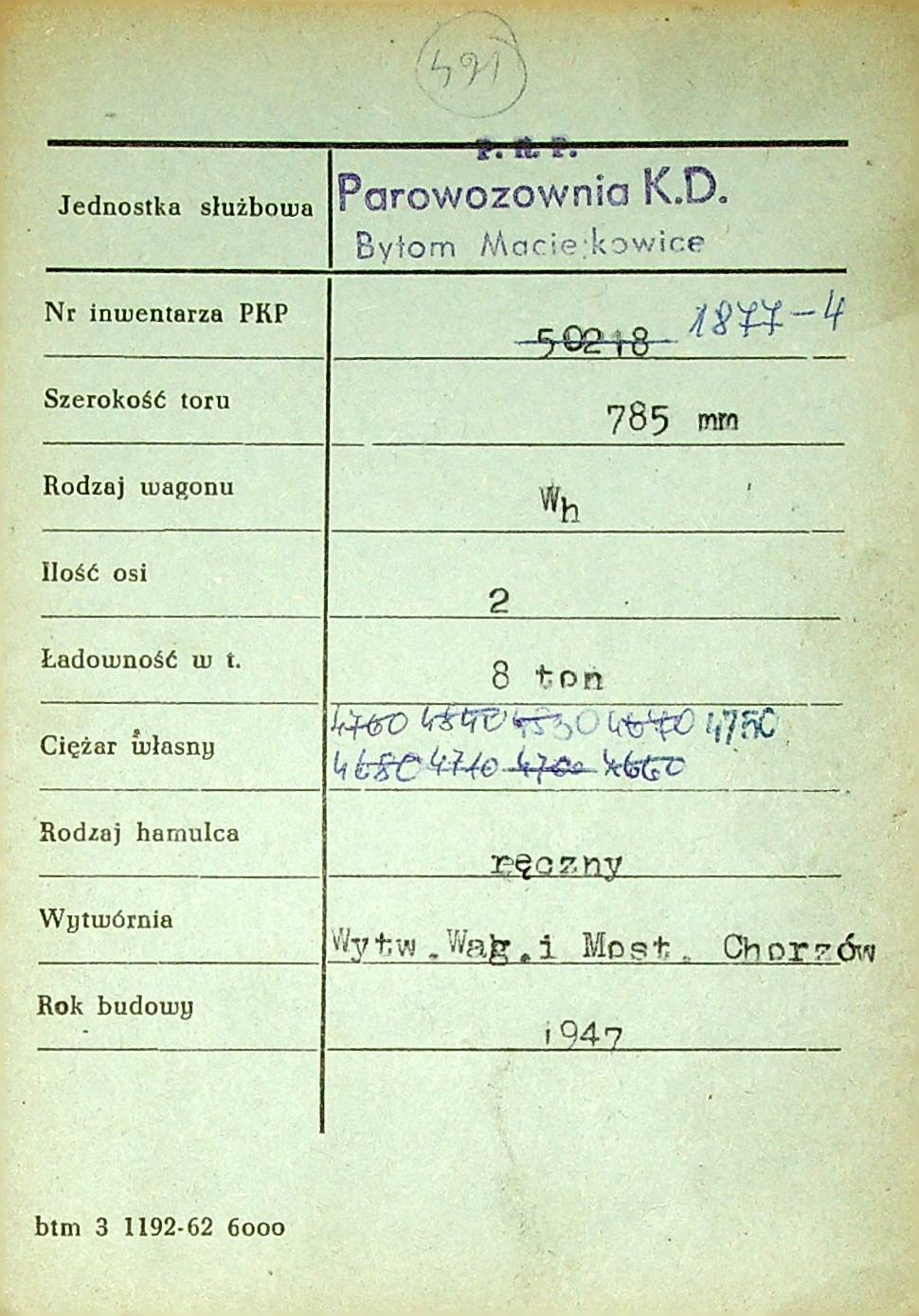Karta wagonu Górnośląskich Kolei Wąskotorowych |