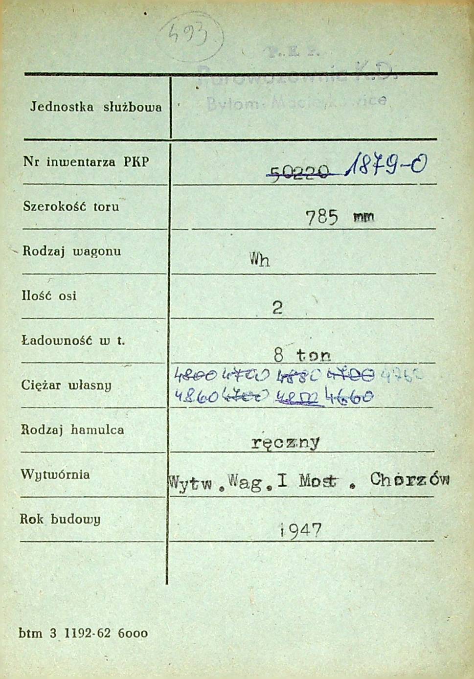 Karta wagonu Górnośląskich Kolei Wąskotorowych |
