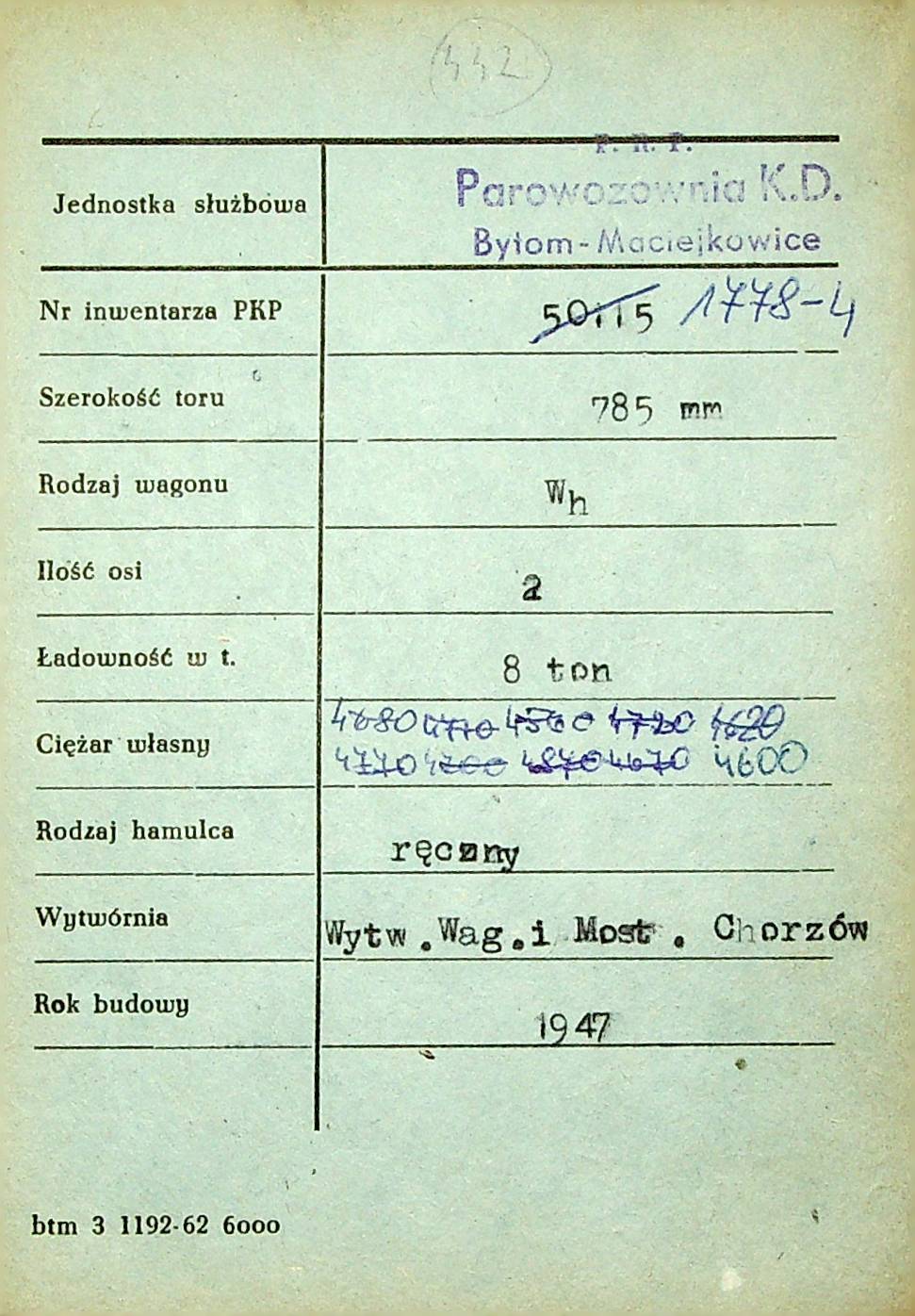 Karta wagonu Górnośląskich Kolei Wąskotorowych |